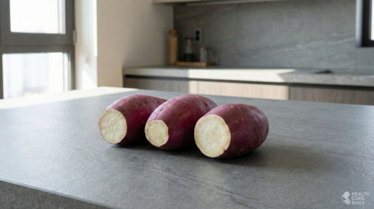 방법은 복잡하지 않다. 먼저, 중간 크기 고구마 3~4개를 고른다. 표면에 묻은 흙은 흐르는 물에 씻어낸 뒤 마른행주로 물기를 닦는다. 이후 양쪽 끝을 각각 0.5~1cm 정도 잘라낸다. 끝부분을 잘라내면, 열이 내부까지 고르게 전달된다. 너무 두껍게 자르면 수분 손실이 커질 수 있어 얇게 정리하는 수준으로 마무리한다.