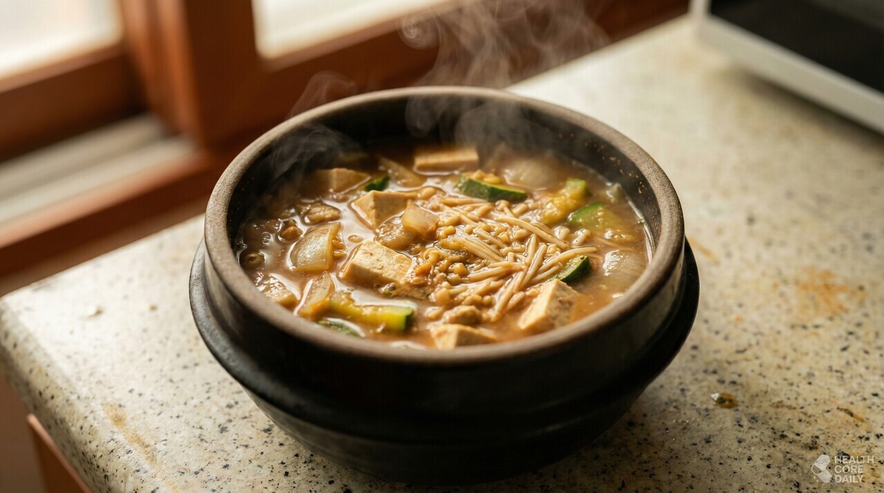 된장찌개는 한국인이 가장 자주 끓이는 찌개다. 그러나 두부 몇 조각, 애호박 몇 점이 된장찌개 재료의 전부라고 생각하는 사람이 많다. 여기에 재료 하나만 더 넣어도 된장찌개의 영양 구성이 완전히 달라지는데, 그 차이를 알고 끓이는 경우는 드물다.