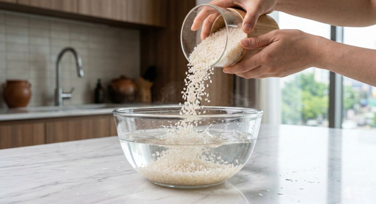 쌀을 씻을 때 많은 이들이 쌀을 그릇에 담은 뒤 물을 붓는다. 그러나 물을 먼저 받아 둔 상태에서 계량한 쌀을 넣어야 한다. 그래야 쌀알이 물에 닿는 순간, 표면에 붙어 있던 가루와 먼지가 곧바로 떨어져 나온다.