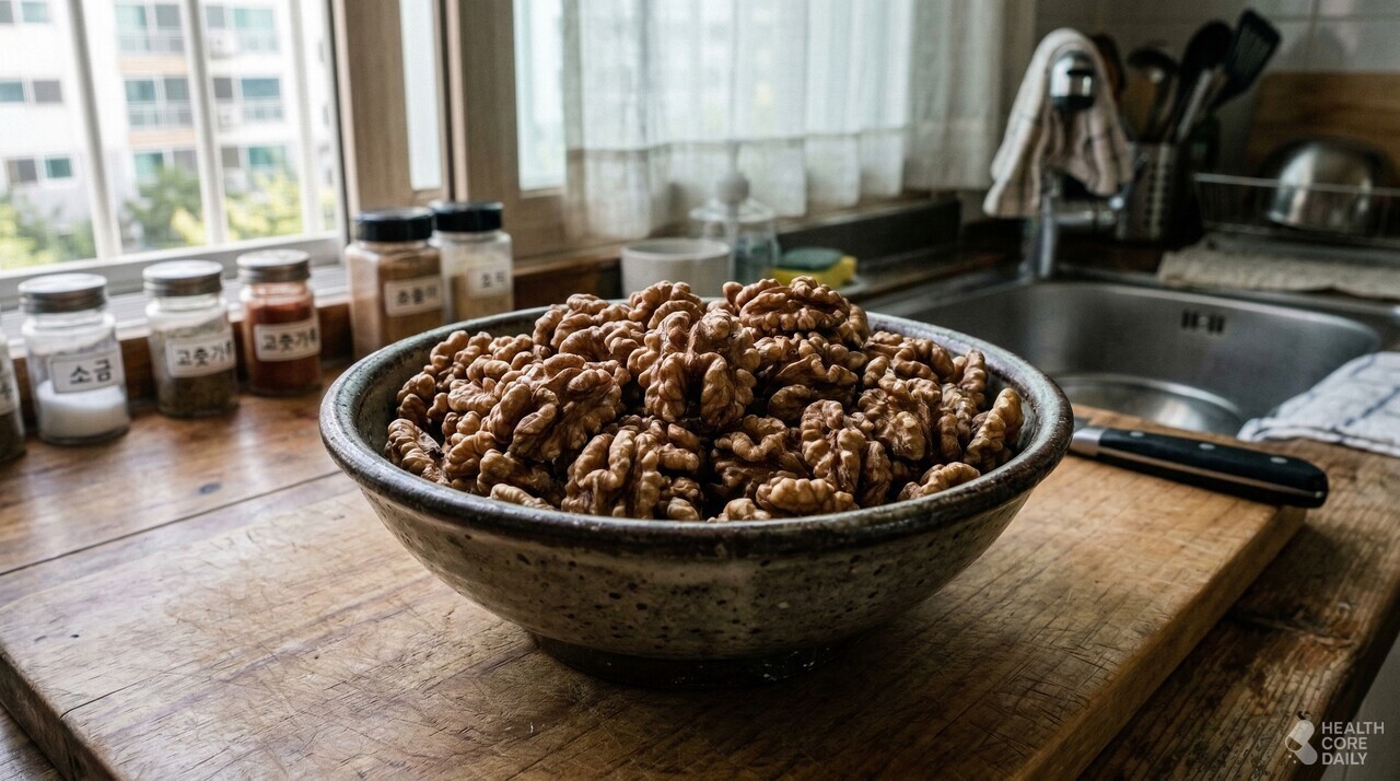 또한 호두에는 폴리페놀과 비타민 E가 들어 있다. 이런 성분은 세포 산화를 줄이고 혈관 건강을 유지하는 데 도움을 준다.