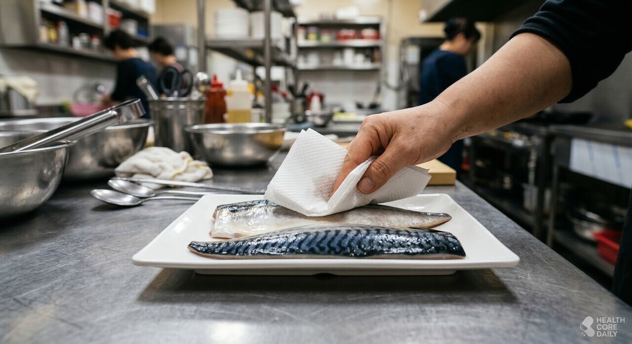 고등어를 집에서 가장 간편하게 먹는 방법은 역시 구이다. 이때 별도로 기름을 두를 필요가 없다. 고등어 자체에 지방이 충분해 팬에 그냥 올려도 되고, 에어프라이어나 오븐을 쓰면 기름 없이도 담백하게 구울 수 있다. 굽기 전에는 물기를 충분히 닦아내야 구울 때 기름이 튀지 않고 냄새도 덜 난다. 소금 간을 할 때는 굵은소금보다 고운 입자를 쓰는 게 고루 배어든다.