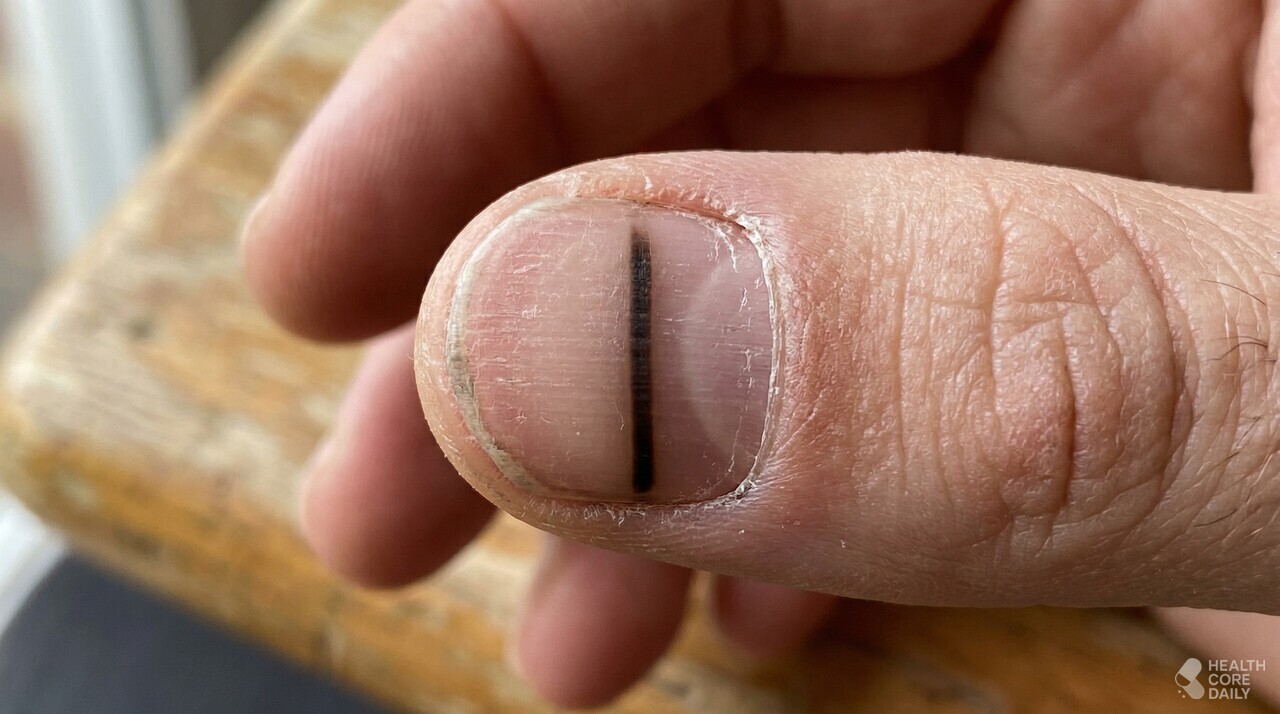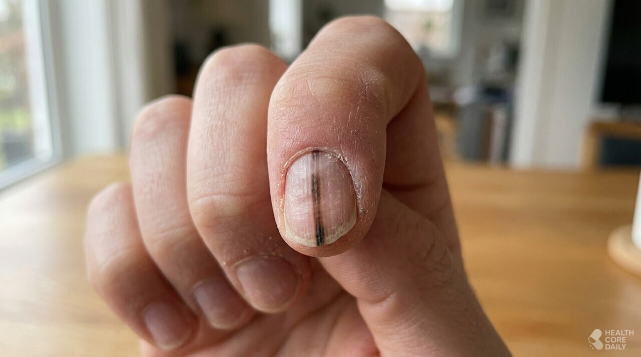 손톱을 세로로 가로지르는 검은 선은 절대 가볍게 볼 수 없다. 피부 색소가 짙은 사람에게는 정상적인 색소 침착으로 나타나기도 하지만, 그렇지 않은 경우라면 손톱 아래에서 발생하는 흑색종을 배제해야 한다.