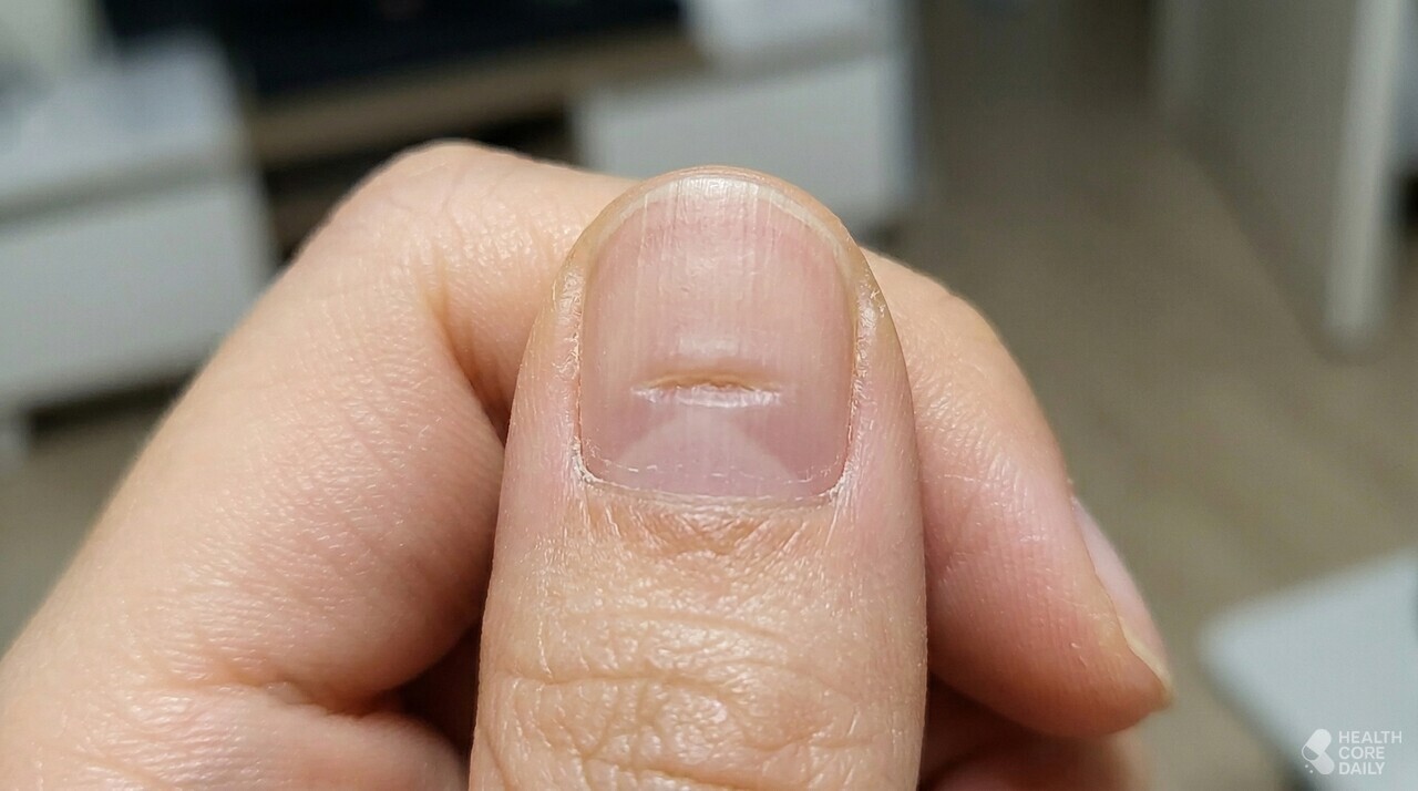 손톱을 가로지르는 패인 선은 고열, 수술, 심한 감염 등으로 손톱 성장이 일시적으로 멈췄던 흔적이다. 손톱은 하루 약 0.1mm씩 자라기 때문에, 가로줄이 뿌리에서 얼마나 떨어져 있는지를 보면 그 사건이 언제쯤 있었는지 대략 짐작할 수 있다.