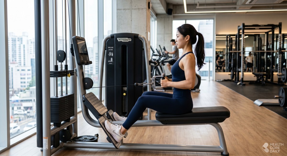 시티드 로우를 처음 할 때는 손잡이를 잡자마자 바로 당기려는 경우가 많다. 하지만 당기기 전에 준비해야 할 동작이 있다. 먼저 날개뼈를 뒤로 모으고, 어깨를 아래로 내려 안정된 자세를 만들어야 한다. 이 과정이 선행돼야 광배근에 자극이 제대로 전달된다.