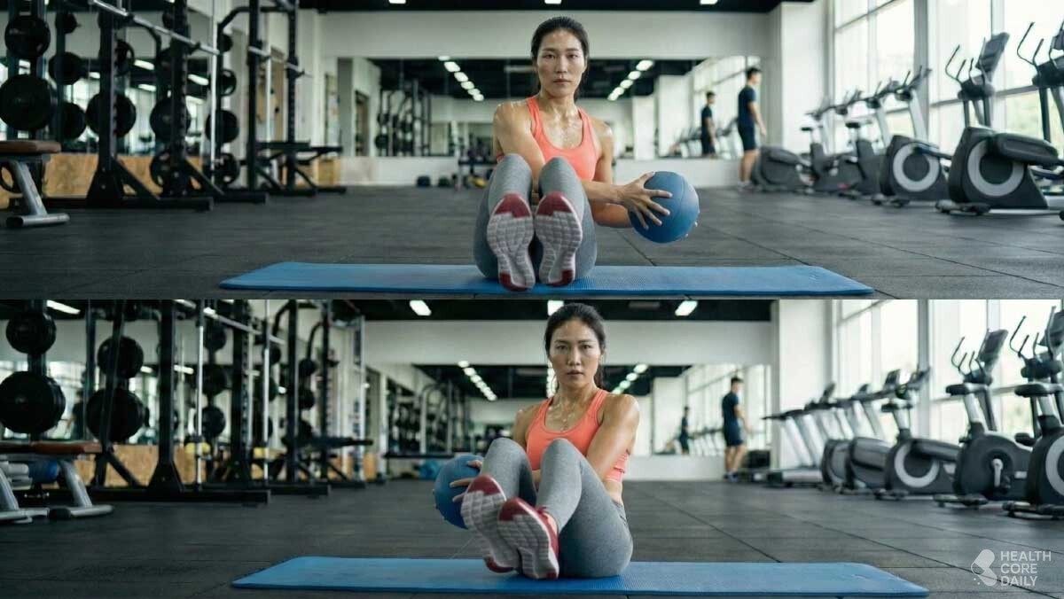 이런 경우에는 복근을 키우는 동작보다, 아랫배가 직접 움직이도록 만드는 회전형 운동이 필요하다. 러시안 트위스트(Russian Twist)는 상체를 고정한 채 몸통을 좌우로 비트는 방식으로, 아랫배와 옆구리 복부를 동시에 겨냥하는 동작이다.