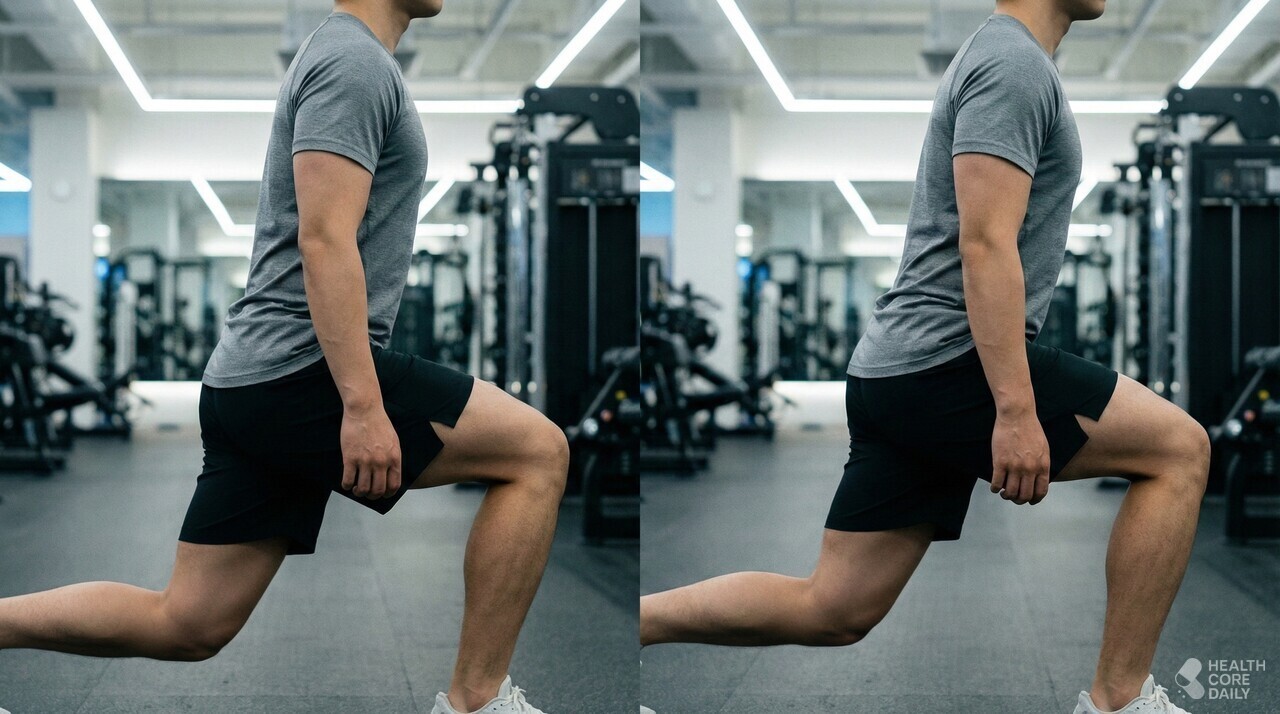 방법은 비교적 간단하다. 먼저 벤치에 엉덩이를 걸치고 앉아 다리를 앞으로 곧게 편다. 발이 편안하게 닿는 지점을 확인한 뒤 일어나 앞발을 그 자리에 둔다. 반대쪽 다리는 무릎을 접어 벤치 위에 올린다. 발등이 닿도록 두는 방식이 일반적이다. 자세를 잡은 뒤 복부에 힘을 준다. 허리가 뒤로 꺾이지 않게 유지한다.