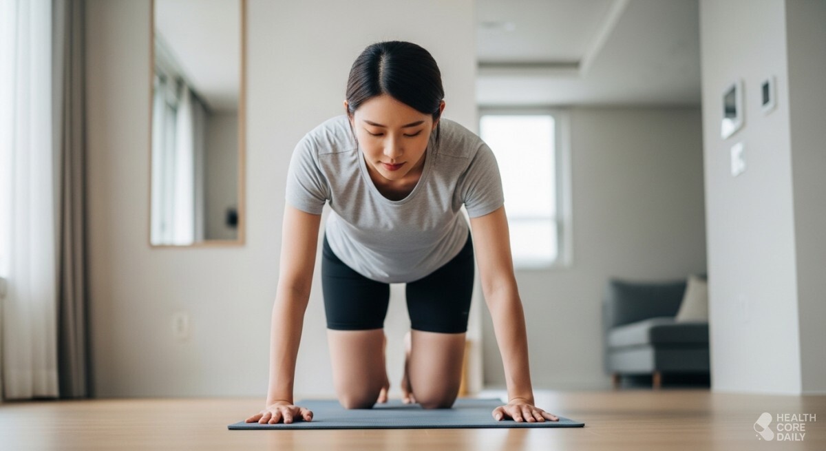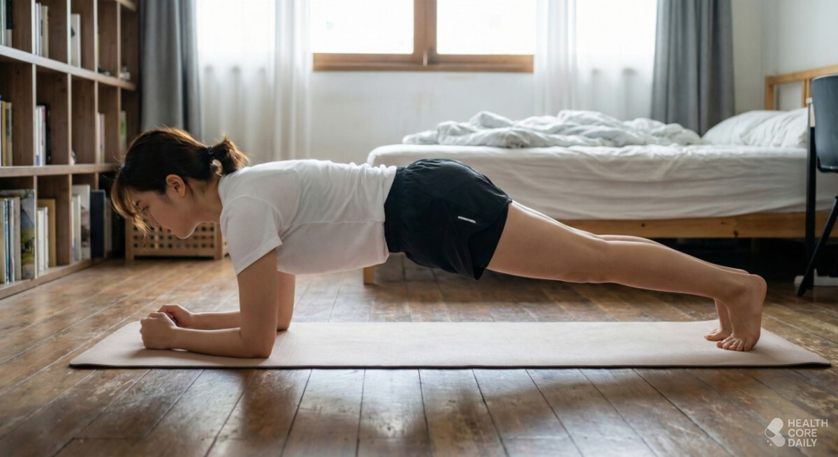 나이가 들수록 근육은 눈에 띄지 않게 줄어든다. 무거운 기구를 다루기 어렵다면, 바닥에서 하는 동작부터 챙길 수 있다. 플랭크는 횟수보다 자세가 우선이며, 몸 높이를 일정하게 유지하는 것이 포인트다.