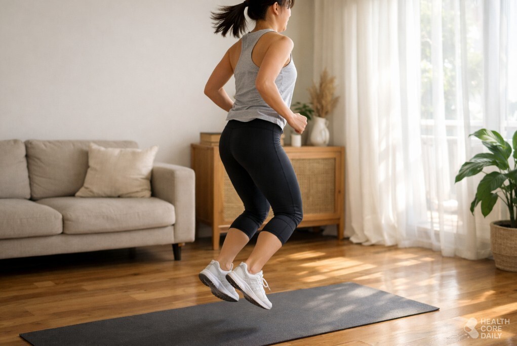 박지윤이 언급한 제자리뛰기는 단순해 보이지만 전신 근육을 동시에 사용하는 유산소 운동이다. 발을 들어 올리고 착지하는 과정에서 종아리와 허벅지 근육이 쓰이고, 균형을 유지하는 동안 복부와 허리 근육도 함께 긴장한다. 팔을 자연스럽게 흔들면 어깨와 팔 근육까지 동시에 움직인다.