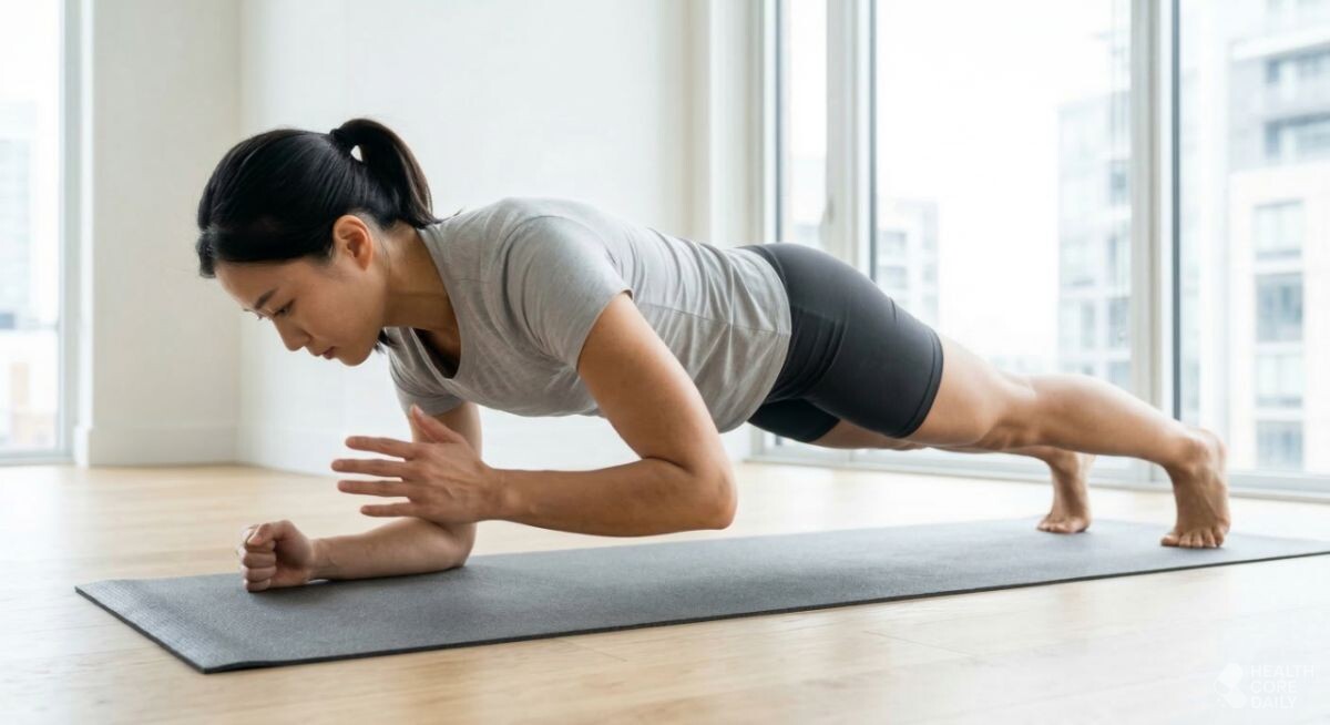 팔을 굽혔다 펴는 과정에서 어깨와 팔 근육을 지속적으로 사용하게 되며, 몸이 흔들리지 않도록 복부에 힘을 유지해야 한다. 팔꿈치 플랭크와 기본 플랭크 자세를 반복하면, 상체와 복부를 동시에 사용하는 시간이 길어진다.