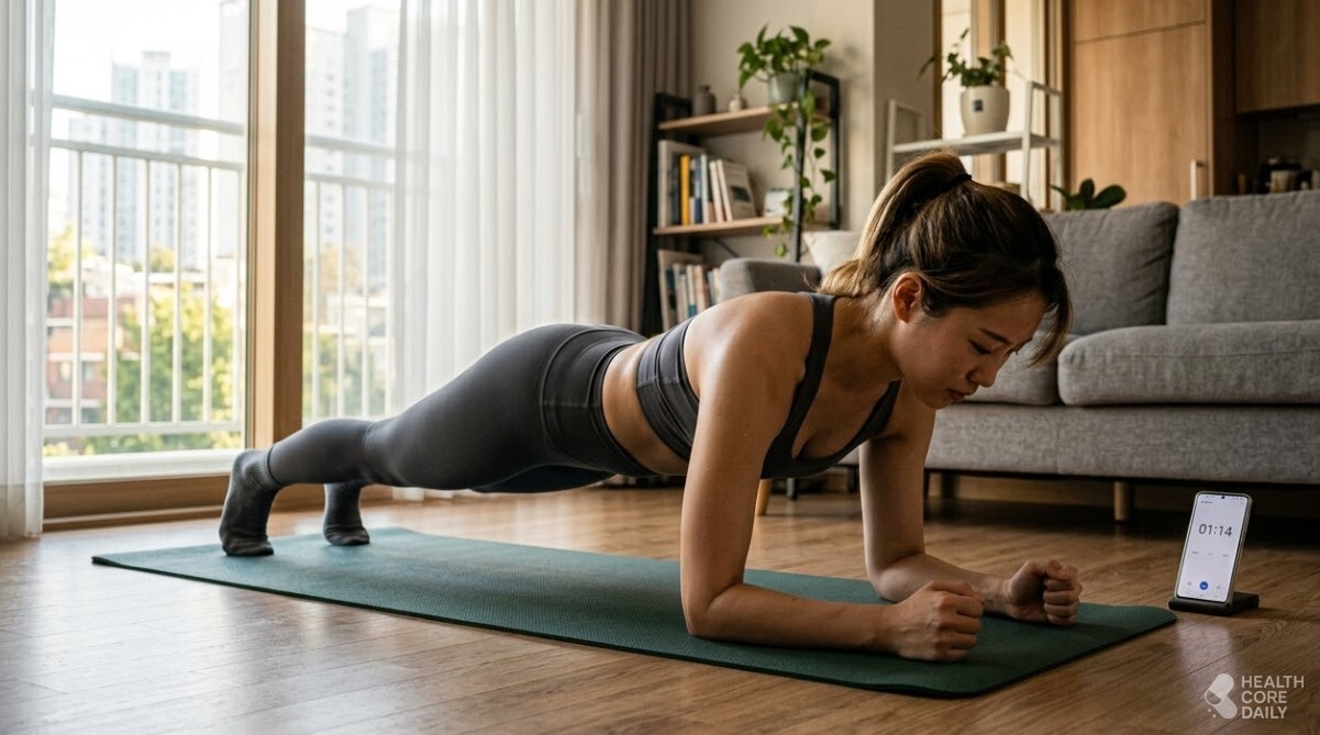 집에서 바로 따라 할 수 있는 3분 플랭크 루틴 구성