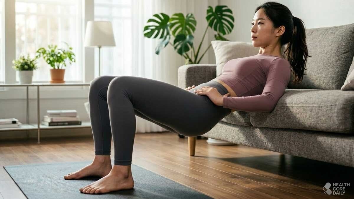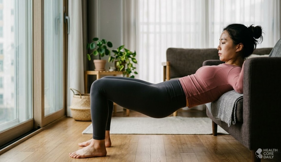 1. 소파 하나면 충분… 엉덩이 근육 직접 자극하는 ‘힙쓰러스트’