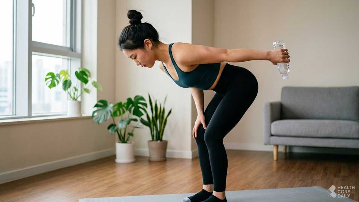 - 상체를 숙이고 팔꿈치를 고정한 채 물병 든 손을 뒤로 쭉 뻗기