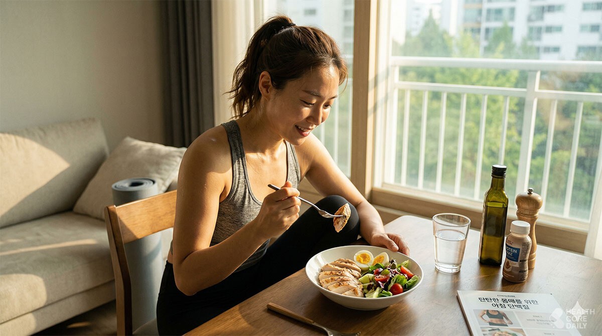 운동 뒤에는 달걀이나 두부처럼 단백질이 풍부한 음식을 먹어 근육에 영양을 공급해주는 것이 하지원 같은 탄탄한 몸매를 만드는 비결이다.