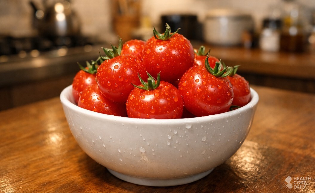방울토마토에는 라이코펜 성분이 들어 있다. 붉은 색을 만드는 이 성분은 채소와 과일에서 발견되는 카로티노이드 계열 물질이다. 토마토를 익혀 먹으면 체내 흡수율이 더 높아진다는 연구도 있다. 또한 수분이 많고 열량이 낮아 밤에 가볍게 먹기 좋은 식품으로 언급된다.
