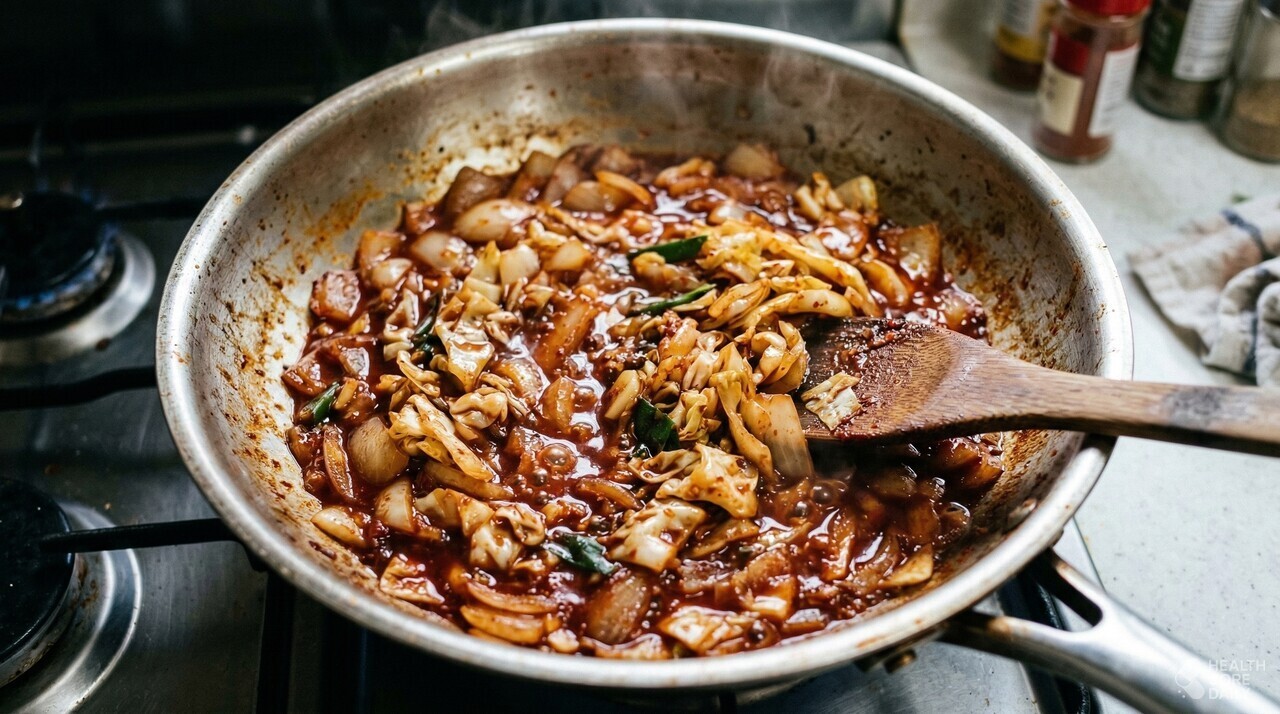 떡볶이에 들어가는 양파와 양배추는 채소 중에서 탄수화물 함량이 높은 편이다. 양파 100g에 탄수화물이 약 8~10g, 양배추는 약 5~6g이 들어 있다. 브로콜리나 오이처럼 100g당 탄수화물이 3g 이하인 채소들과 비교하면 두 배 이상 많다. 채소는 많이 먹어도 된다는 생각으로 양파와 양배추를 마음 놓고 먹으면, 거기서도 탄수화물이 쌓인다. 게다가 양파와 양배추는 볶거나 졸이면 부피가 크게 줄어들기 때문에 생각보다 훨씬 많은 양을 한꺼번에 먹게 된다.
