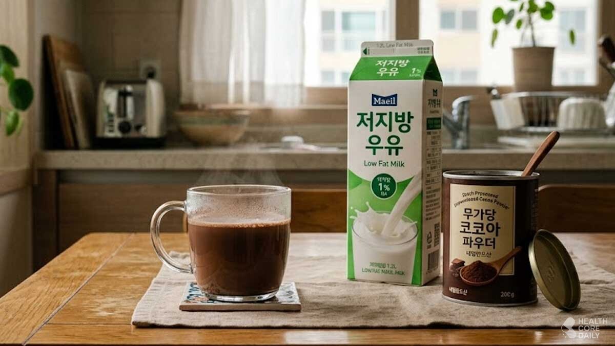만드는 방법은 간단하다. 우유를 끓이지 않고 미지근하게 데운 뒤 코코아파우더를 넣고 잘 저어주면 된다. 파우더가 잘 풀리지 않을 때는 소량의 물에 먼저 개어서 반죽처럼 만든 다음 우유를 붓는 방식도 있다. 처음에는 쌉싸름한 맛이 낯설 수 있는데, 바나나를 얇게 잘라 곁들이거나 꿀을 0.5작은술 이하로 소량만 더하면 단맛을 크게 올리지 않고도 마시기 편해진다.