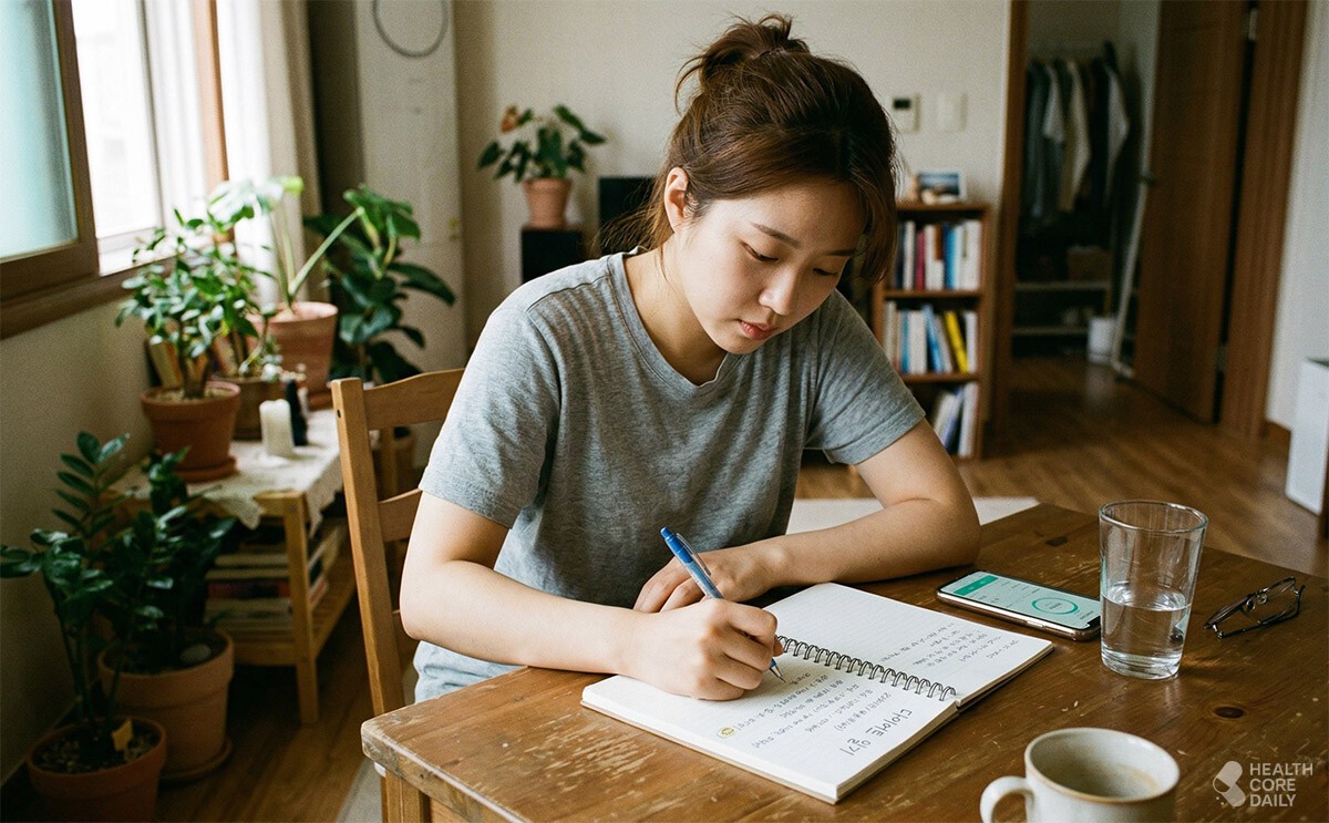 매일 먹은 음식을 기록하는 방식은 전문가들이 권장하는 효과적인 체중 관리법이다. 기록을 하면 무심코 먹는 간식이나 야식을 스스로 인지하게 되어 자연스럽게 양을 조절하게 된다. "물만 마셔도 살이 찐다"고 느끼는 사람일수록 일기를 써보는 것이 좋다. 기록을 통해 자신이 실제로 얼마나 먹는지 객관적인 수치로 확인하면 식습관을 고치는 데 큰 동기가 부여된다.