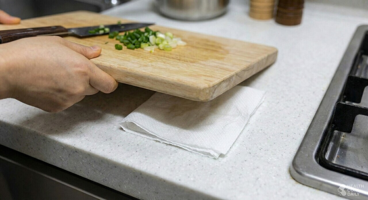 2. 도마가 밀릴 땐 젖은 키친타월 한 장 깔기