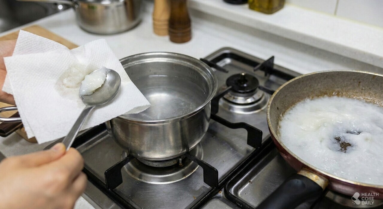 3. 냄비 물 넘칠 땐 식용유로 테두리 닦기