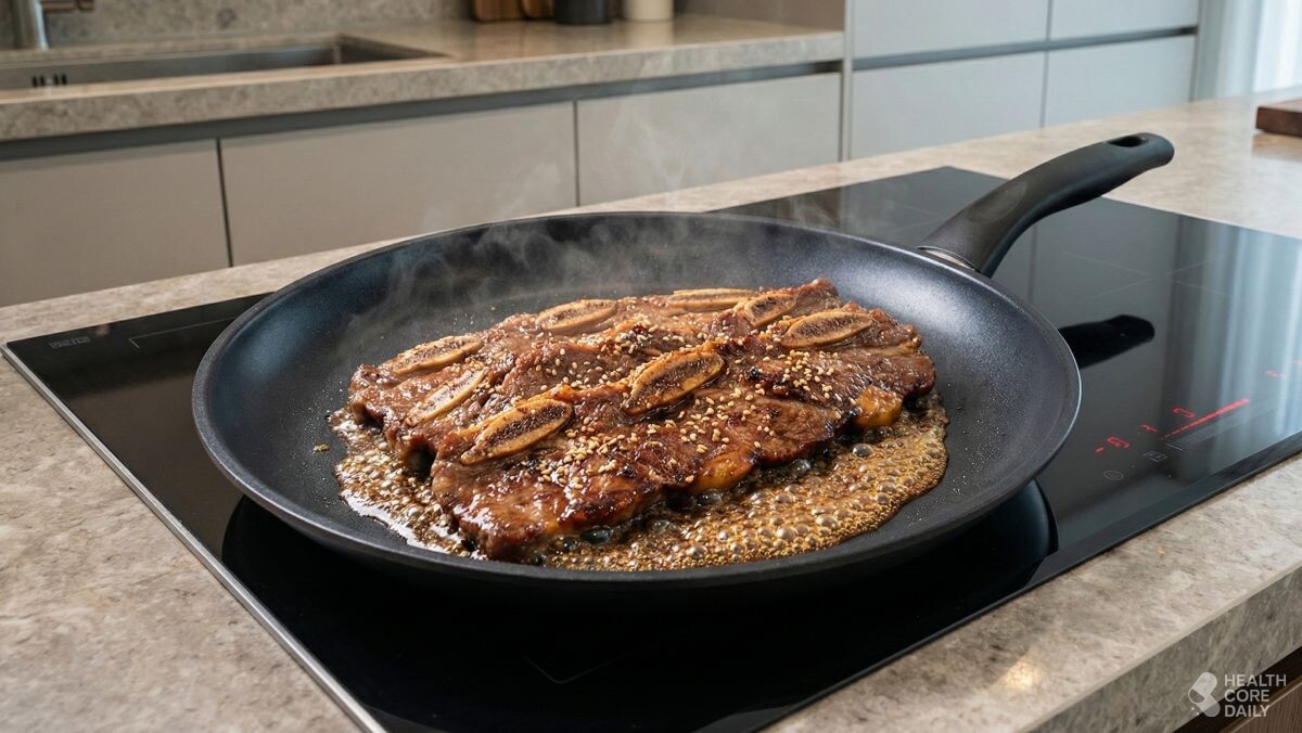 굽기는 중불에서 시작한다. 팬을 충분히 달군 뒤 기름을 소량 두르고, 고기를 올리기 전 양념을 살짝 턴다. 과한 양념은 쉽게 타기 때문이다. 앞면에서 핏물이 올라오면 뒤집고, 중강불로 겉면을 익힌 뒤 중약불로 낮춰 속까지 익힌다.