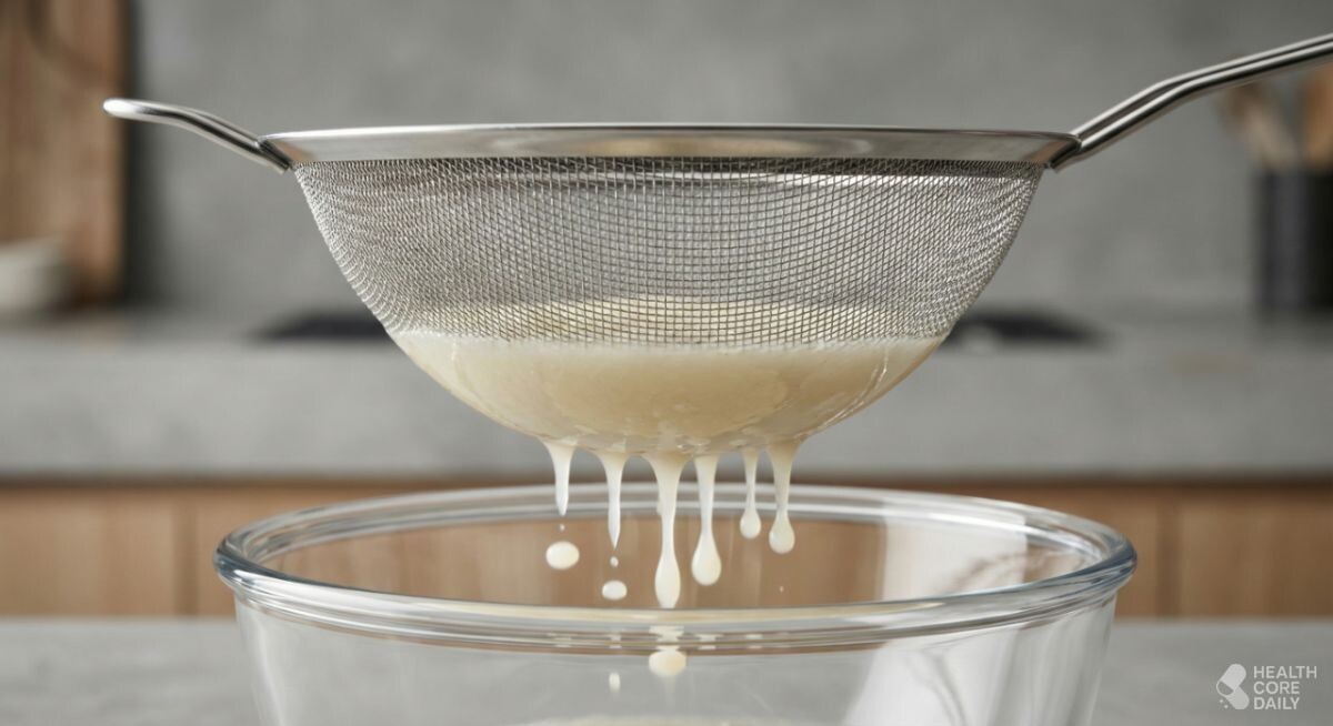 4. 배 1개 반, 양파 1개, 물 1컵을 믹서에 갈아 체에 거른다.