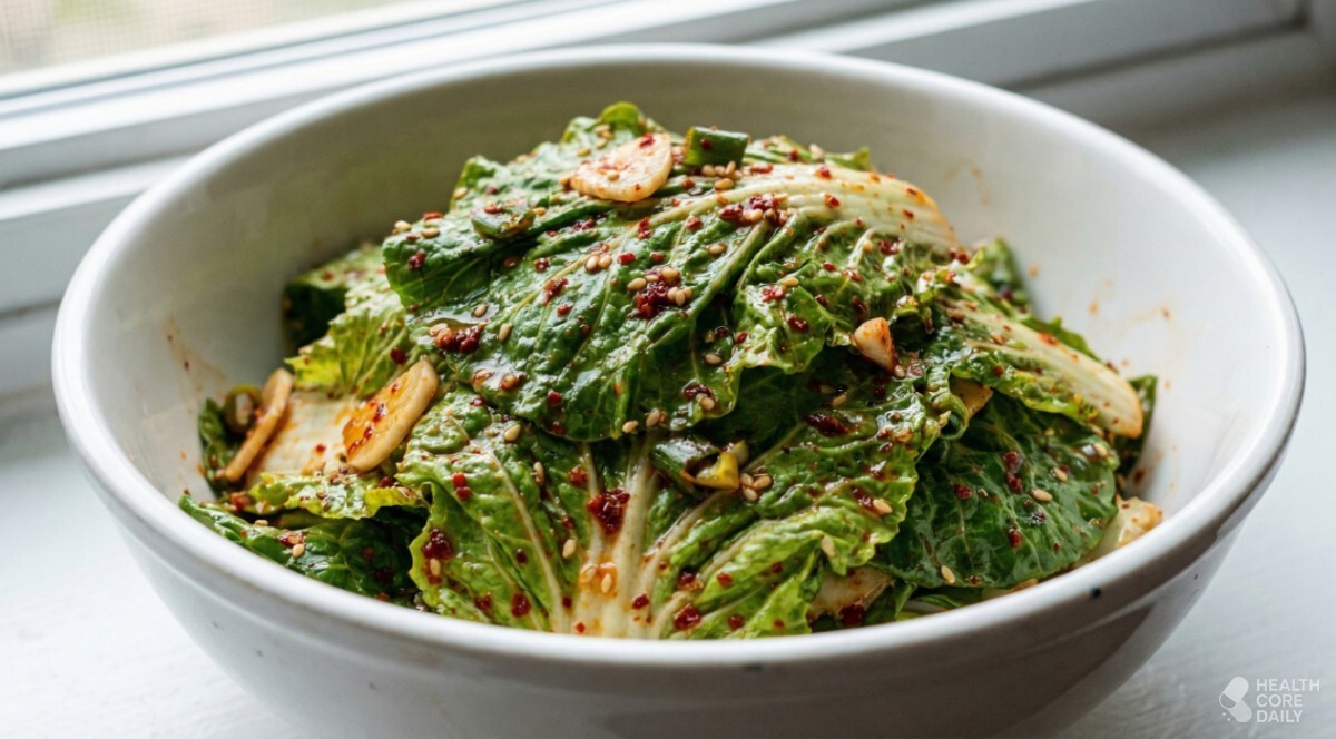 봄동은 특히 식이섬유 함량이 높은 채소로, 배추 대비 무려 17배 많다. 이 중 대부분이 물에 녹지 않는 불용성 식이섬유라, 장운동을 돕고 변비를 완화하는 데 효과적이다.