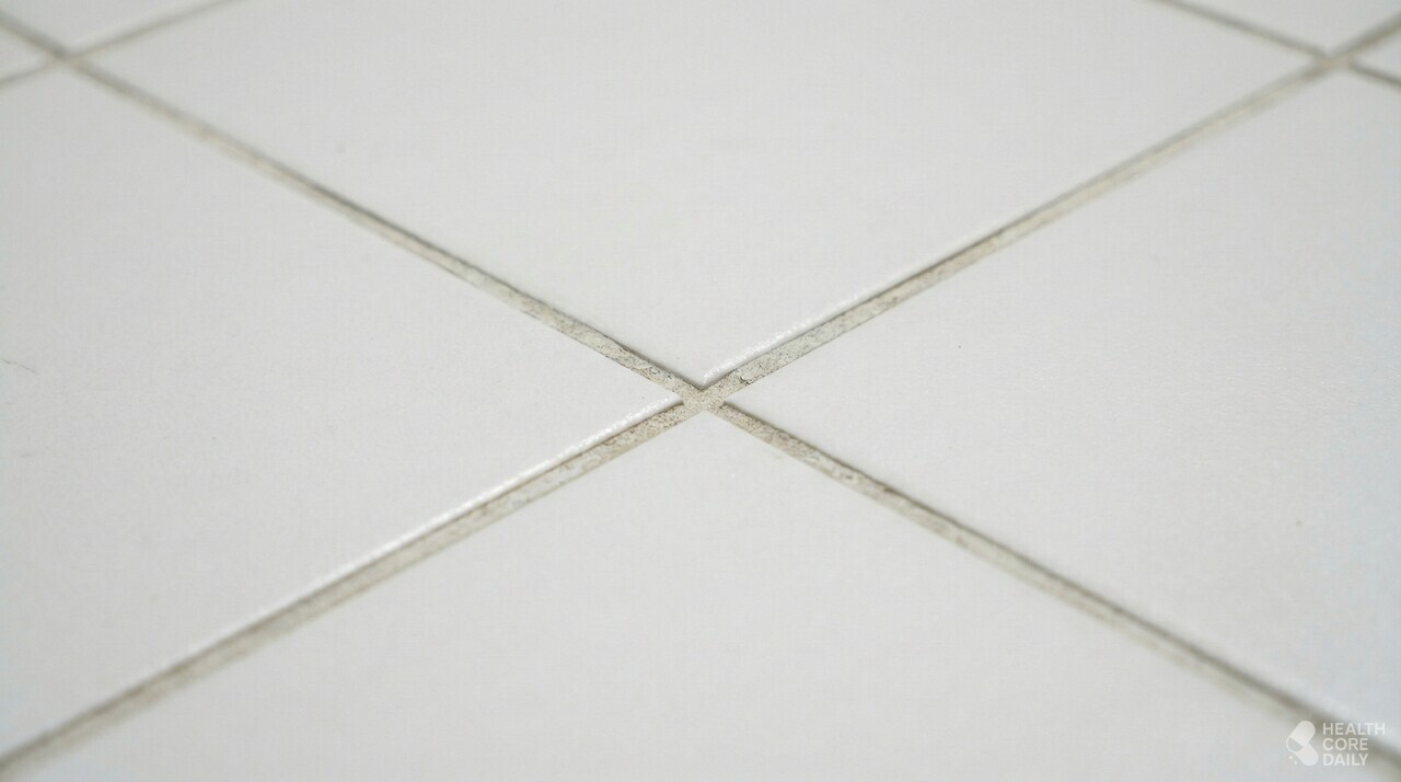 2. 타일 틈새·배수구·바닥에 곰팡이 제거 세정제를 분사하고 잠시 후 닦아낸다.