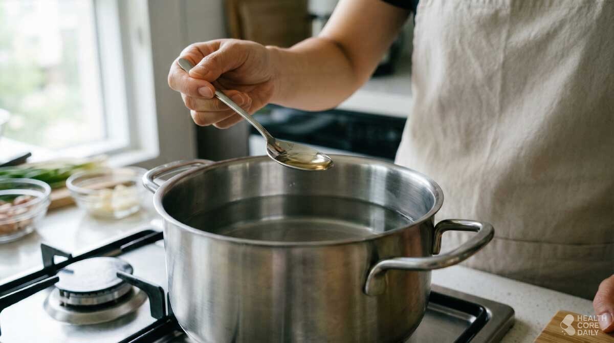 먼저 신경 써야 할 건 식초다. 식초는 단백질을 조절하고 냄새를 줄여주는 재료다. 물이 끓고 난 뒤에 넣는 경우가 많지만, 실질적인 효과를 내려면 물을 끓이기 전에 넣어야 한다. 끓기 시작하면 오징어 단백질은 이미 반응을 시작한 상태라 식초의 역할이 줄어든다. 불을 켜고 냄비에 물을 올린 뒤, 식초를 한 스푼 넣어두면 그 자체로 단백질이 천천히 익을 수 있는 환경이 만들어진다. 이때 식초 특유의 시큼한 냄새나 맛은 오징어에 남지 않는다.