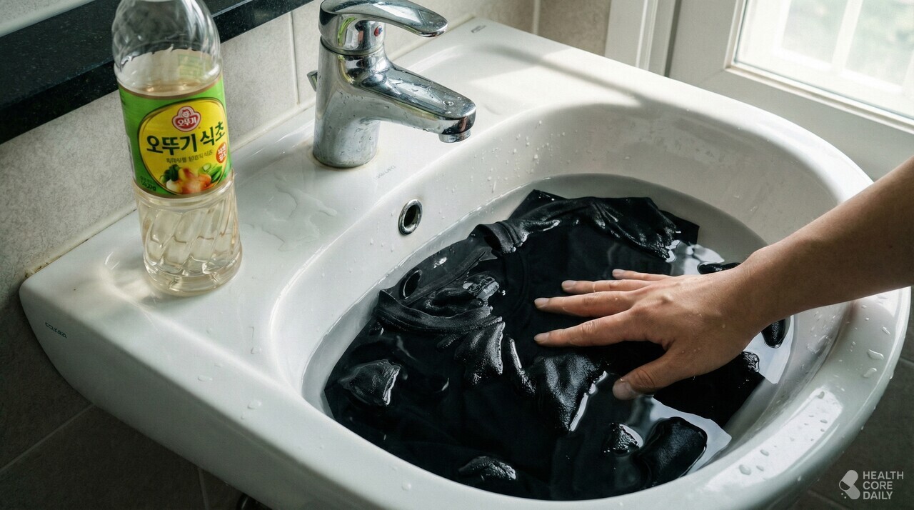 야노 시호도 추성훈의 운동복과 수건을 전용 세제로 따로 세탁하는 방법을 선택했다. 냄새 제거에 가장 효과적인 방법은 식초 희석액에 미리 담가두는 방식이다. 세면대나 대야에 식초 1 : 물 3~4 비율로 섞은 뒤 운동복과 수건을 15분에서 1시간 정도 담가두면, 식초의 아세트산 성분이 냄새 물질을 중화하고 세균을 줄여준다. 이후 찬물이나 미지근한 물로 세탁기를 돌리면 섬유 손상 없이 냄새 제거에 도움이 된다.