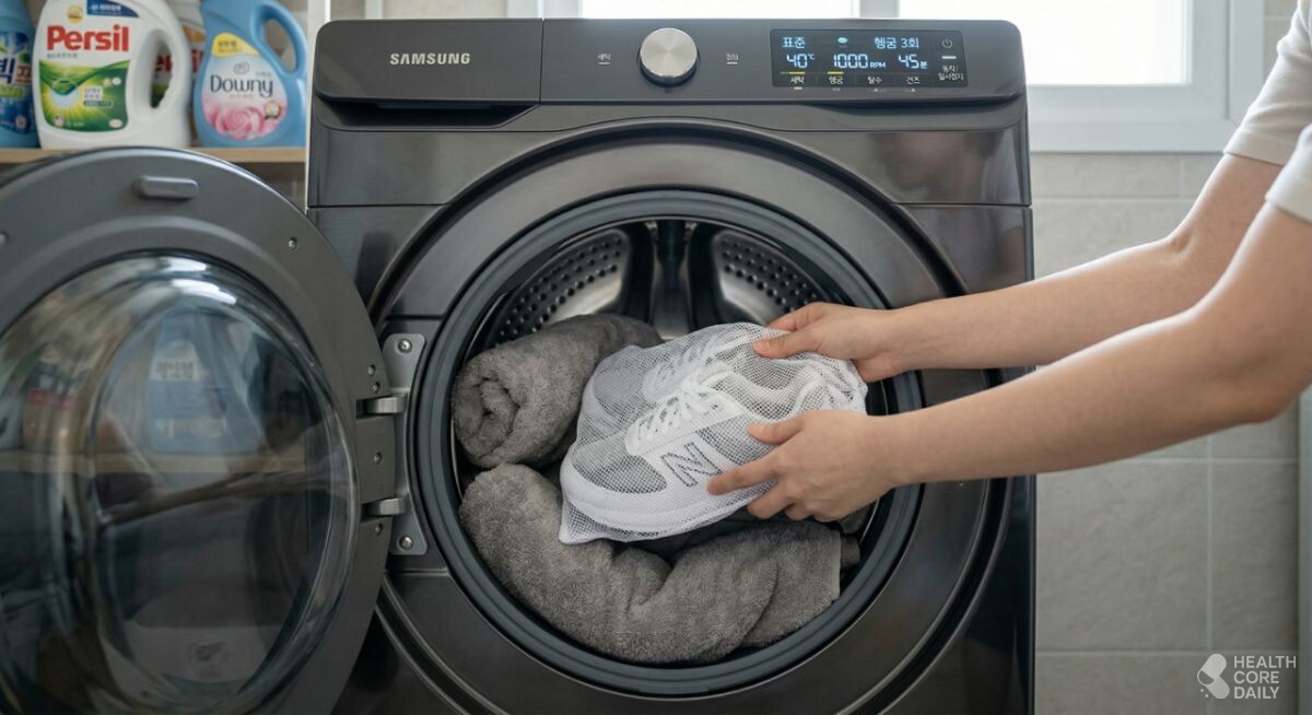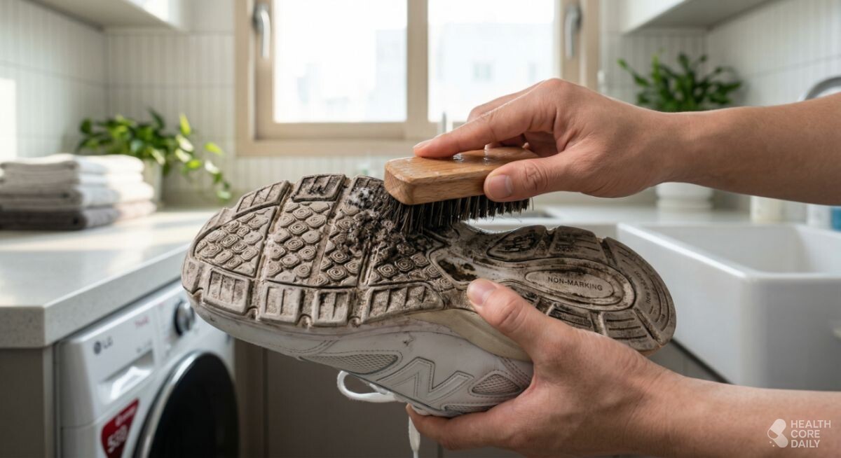 못 쓰는 칫솔이나 작은 솔로 밑창과 옆면에 붙은 흙을 가볍게 털어내면 된다. 이 과정을 거치면 세척 효과가 훨씬 좋아지고, 세탁기 필터가 막히는 문제도 미리 예방할 수 있다.