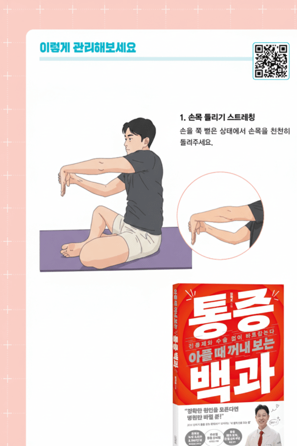 능동적 스트레칭: 벽이나 바닥을 이용해 손목 근육을 끝까지 늘려주는 스트레칭은, 짧아진 근육이라는 올가미를 풀어주는 가장 강력한 자가 치료법입니다.