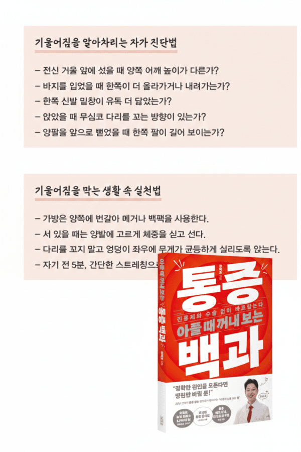 (출처 : 아플때 꺼내보는 통증 백과 - 잦은 허리 통증은 결국 틀어진 몸에서 발생합니다)