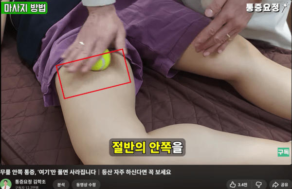 (출처 : 유튜브 채널 통증 요정 - 무릎 아플 때 관리 마사지 포인트)