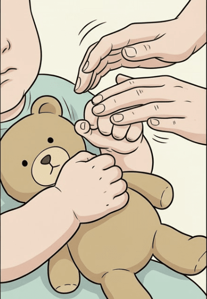 아기는 더 세게 움켜쥡니다.
