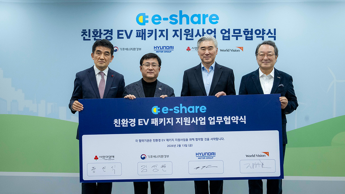 13일 서울 중랑구 구립신내노인종합복지관에서는 기후에너지환경부, 사회복지공동모금회, 월드비전과 함께하는 ‘이셰어(E-share)’ 사업 연장 다자간 업무협약(MOU) 체결식이 열렸다. 이날 행사에는 성 김 현대차그룹 전략기획담당 사장, 김성환 기후에너지환경부 장관 등 주요 관계자들이 참석해 자리를 빛냈다.