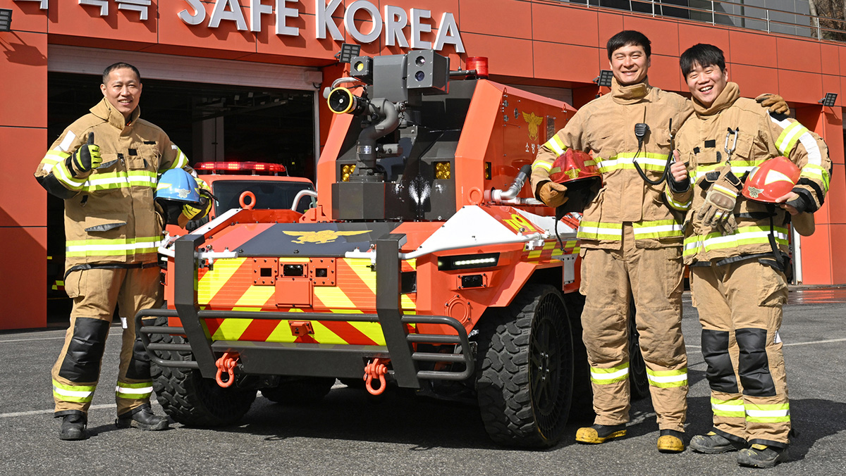 안정적인 현장 임무 수행을 위해 최고 속도 50km/h를 발휘하는 첨단 자율주행 보조시스템이 탑재됐으며, 최대 300mm 높이의 수직 장애물 통과 및 경사로 등판이 가능하다. 또한 단파 및 장파장 열화상 센서 기반의 AI 시야 개선 카메라를 통해 연기와 고열 속에서도 정밀한 현장 정보를 실시간으로 전송한다.