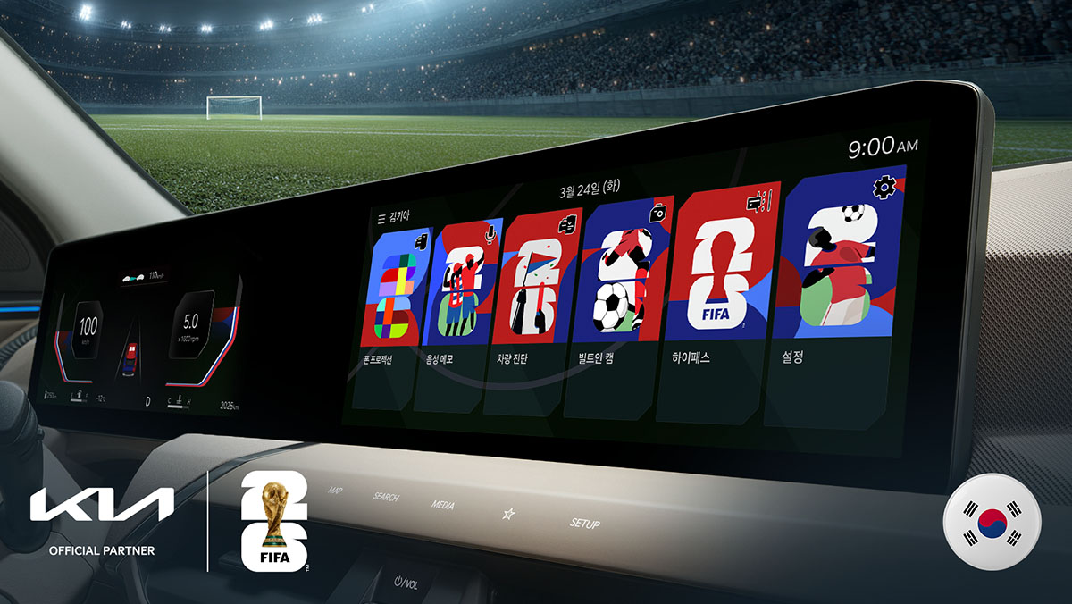 기아가 다가오는 FIFA 월드컵 2026을 기념해 전 세계 축구 팬들을 위한 국가별 디스플레이 테마를 25일 출시했다. 이번에 새롭게 추가된 테마는 대한민국을 포함해 월드컵 개최국인 캐나다, 멕시코, 미국 등 본선 진출국 중심 총 15가지로 구성됐다.