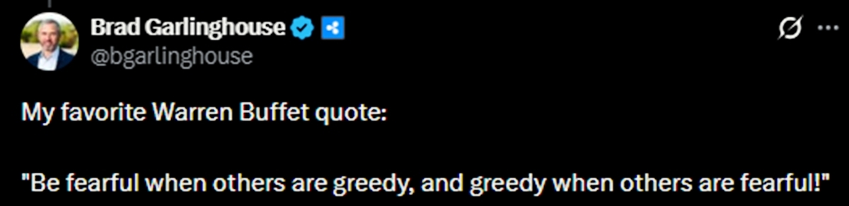 갈링하우스 CEO 역시 시장의 지나친 겁을 이용해 기회를 잡아야 한다는 긍정적인 태도를 보였다. XRP 리더들은 지금의 가격 하락이 사람들이 겁에 질려 만들어낸 기회라고 주장했다.