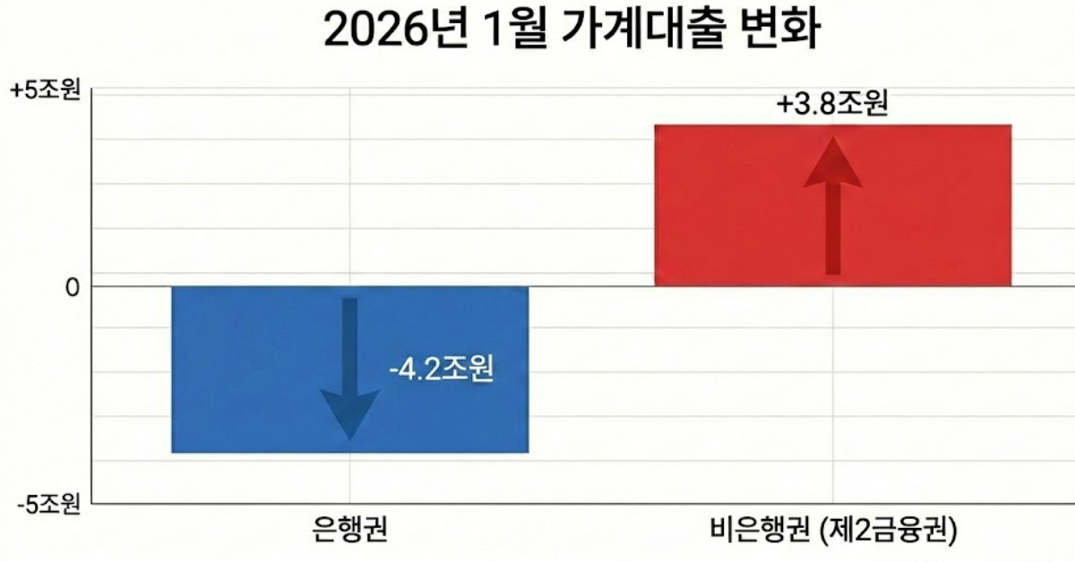 2026년 새해 시작과 함께 가계대출 시장에서 뚜렷한 ‘머니 무브’가 감지됐다. 은행권이 대출 빗장을 걸어 잠그며 감소세를 이어간 반면, 상호금융을 포함한 제2금융권으로 대출 수요가 급격히 쏠리는 현상이 숫자로 확인된 것이다.