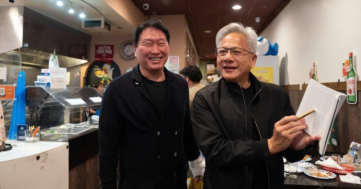최태원 SK그룹 회장과 젠슨 황 엔비디아 최고경영자(CEO)가 미국 실리콘밸리의 한국식 치킨집에서 만나 AI 반도체 협력 강화 방안을 논의했다.