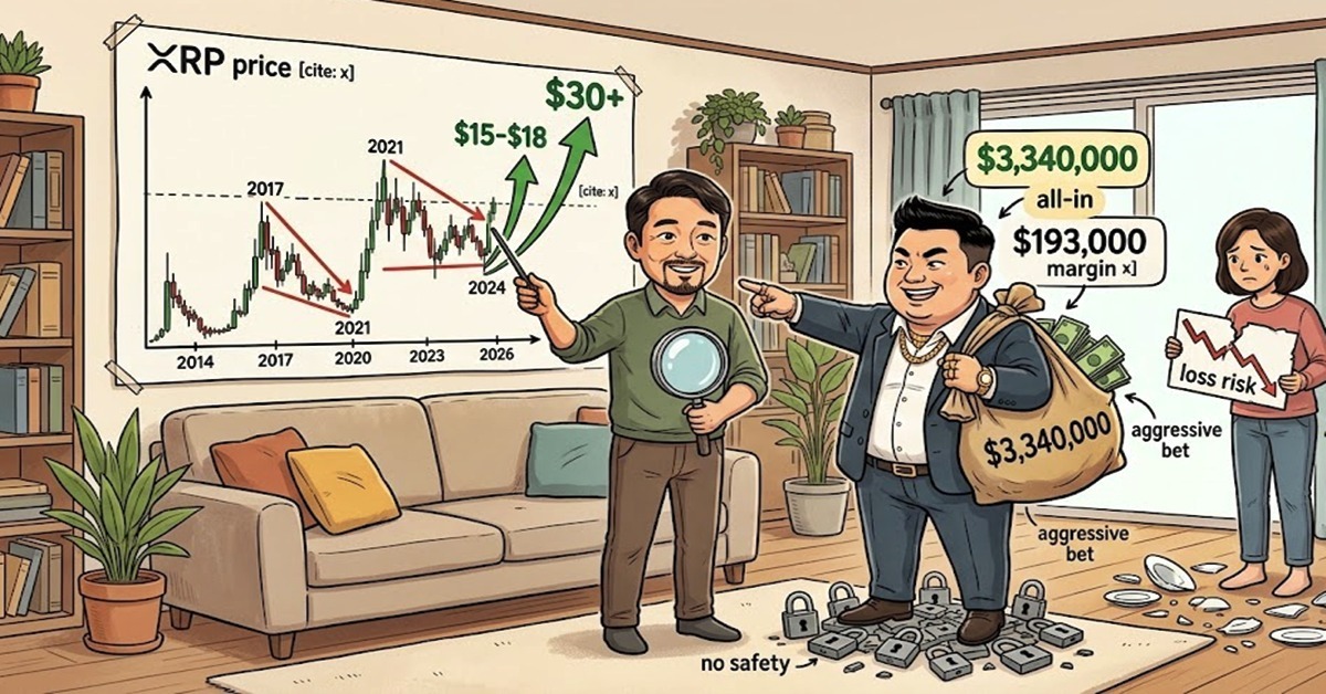 시장 전문가 자이프 크립토(Xaif Crypto)는 한 고래가 334만 달러라는 거액을 XRP 상승에 걸었다고 전했다. 이 고래는 19만 3000달러의 자산으로 104%의 증거금을 사용해 아무런 안전장치 없이 모든 것을 투자했다. 이는 XRP의 상승 잠재력에 대한 강한 믿음을 보여주지만 위험성도 매우 크다.