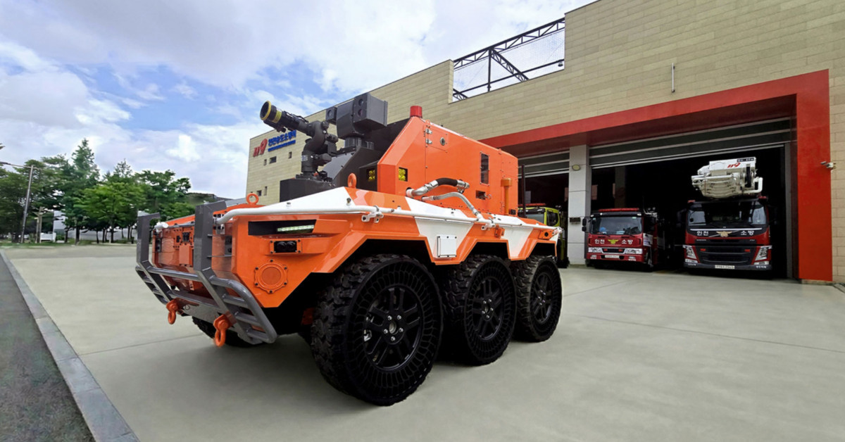 로봇은 화재 현장의 극심한 열기를 견디기 위해 특화된 냉각 및 단열 설계를 채택했다. 차체 외부로 미세한 물 입자를 지속적으로 분사해 장비 주변에 수막을 형성하는 자체 분무 시스템은 500도에서 800도 사이의 고온 환경에서도 내부 회로와 구동계를 보호해 안정적인 진압 활동을 가능하게 한다. 지난 1월 충북 음성군의 공장 화재 현장에서 실제 투입되어 그 실효성을 검증받은 바 있다. 기동성 확보를 위해 현대모비스의 6X6 인휠 모터 시스템(바퀴 내부에 모터를 직접 장착해 구동력을 전달하는 방식)을 적용했다. 각 바퀴를 독립적으로 제어함으로써 제자리에서 360도 회전이 가능하며 이는 지하 주차장이나 복잡한 물류 창고처럼 좁은 공간에서도 제약 없는 이동을 보장한다.