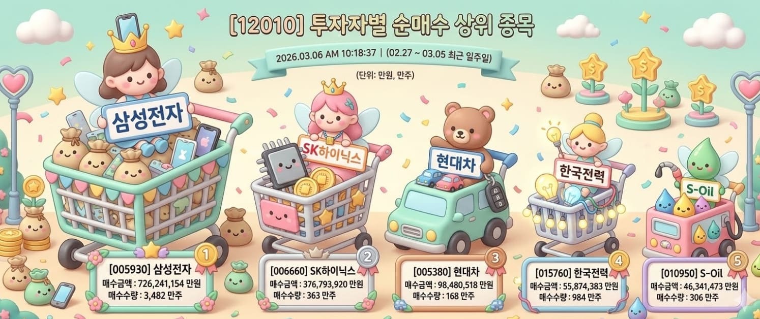 마지막 5위는 S-Oil로 나타났다. 개인은 4634억 원을 순매수했다. 매수 수량은 1621만 4941주, 매도 수량은 1314만 8772주로 순매수 수량은 306만 6169주를 기록했다. 최근 국제 유가의 변동성 확대와 정제마진 개선세가 뚜렷해지며 정유주에 대한 저가 매수세가 유입된 결과다. 배당 매력도가 높은 종목 특성상 3월 배당 시즌을 앞두고 안정적인 수익을 추구하는 개인 투자자들의 수요가 몰린 것으로 보인다.