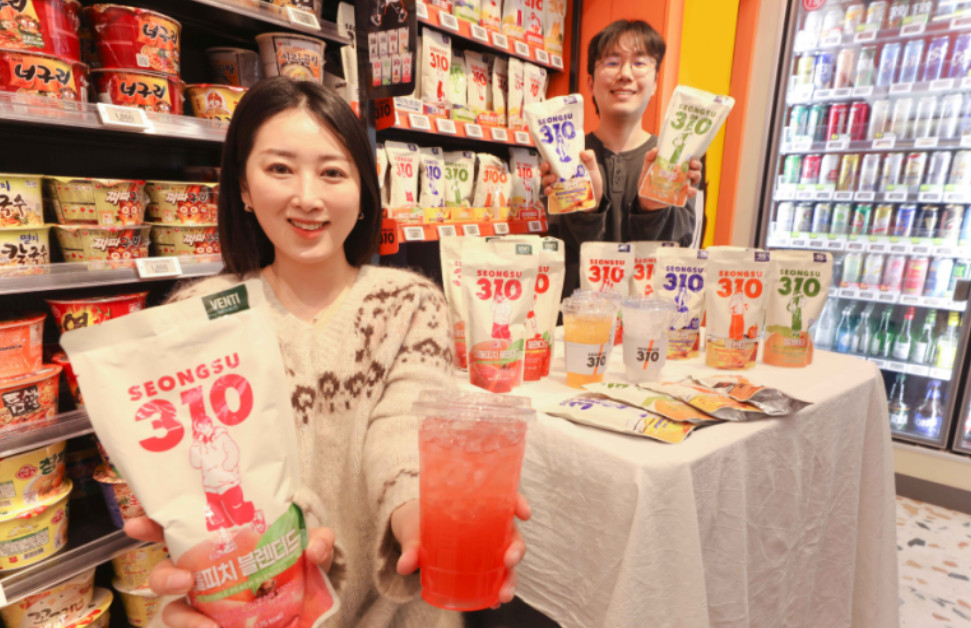 이번 봄 시즌 신제품 출시에 따라 이마트24의 자체 카페 브랜드 성수310의 파우치 음료 라인업은 기존에 운영하던 8종에서 총 15종으로 대폭 확대되었다. 성수310은 대한민국 최신 소비 트렌드를 주도하는 상권인 성수동의 감성을 모티브로 삼아 커피, 일반 음료, 베이커리, 아이스크림 등 다방면의 상품군을 포괄하는 통합 디저트 브랜드다. 과거 메가 인플루언서의 먹방 리뷰 영상 등을 통해 온라인상에서 크게 입소문을 타며 화제가 되었던 스윗뱅쇼를 비롯해 커피와 조화를 이루는 각종 베이커리 상품들이 꾸준한 판매 실적을 올리고 있다.