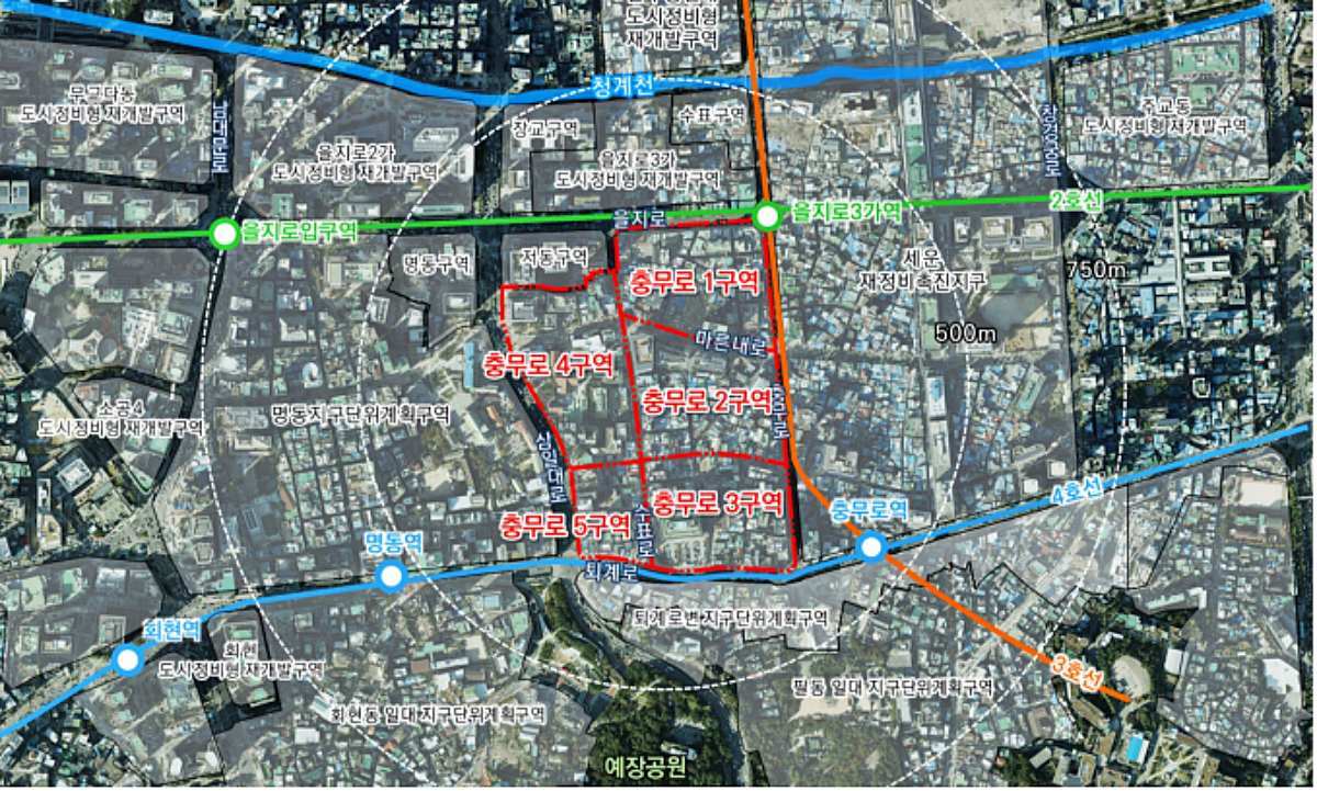재개발 대상인 충무로 1·2·3·4·5 구역은 충무로, 을지로, 퇴계로, 삼일대로로 둘러싸인 도심 핵심 지역이다. 이곳은 낮에는 인쇄 골목을 중심으로 산업적 활력이 이어지고, 밤에는 이른바 ‘힙지로’로 불리며 젊은 층이 찾는 공간으로 자리 잡아 왔다. 서울시는 이 같은 지역의 특성을 고려해 기존 산업과 지역 정체성을 살리면서도 도심 관리의 효율성과 민간 정비사업의 공공성을 함께 높일 수 있도록 정비계획을 수립했다고 설명했다.