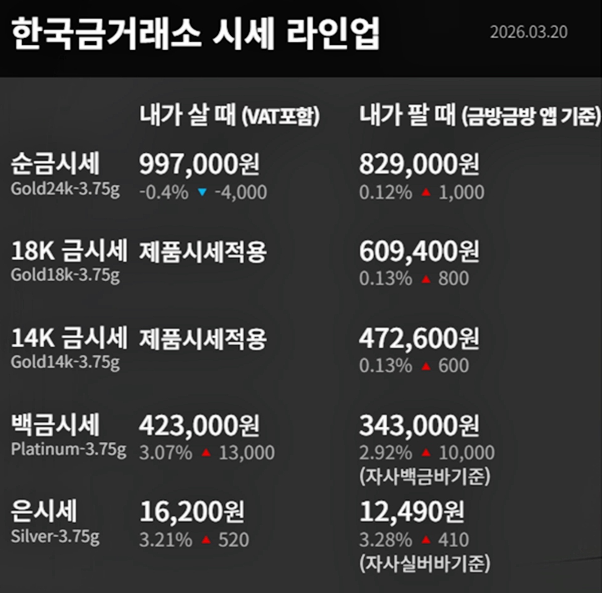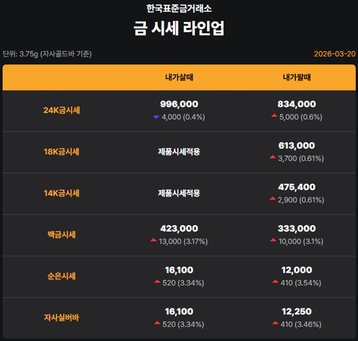 순금 : 매입가 99만 6000원 / 매도가 83만 4000원