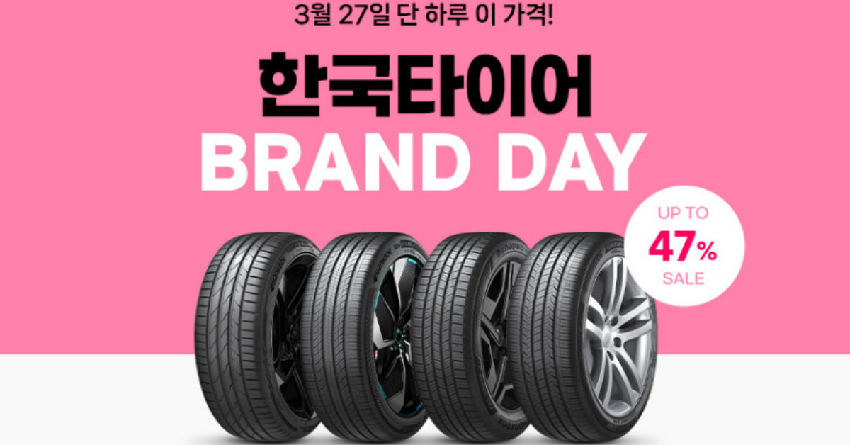 27일 한국타이어가 단 하루 동안 네이버 쇼핑라이브와 연계한 브랜드데이 프로모션을 진행하며 주요 타이어 제품군을 최대 47% 할인하고 휠 얼라인먼트 서비스를 포함한 다각적인 구매 혜택을 제공한다.