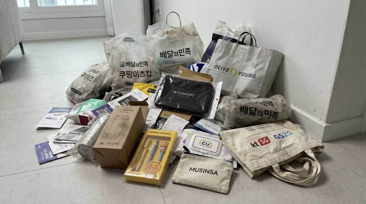 두 번째는 공짜로 받은 물건들이다. 배달 음식에 딸려온 용품, 행사장 증정품, 호텔 어메니티, 쇼핑몰 사은품이 대표적이다. 돈을 주고 산 게 아니니 손해는 없다고 생각하기 쉽지만 이 물건들이 차지하는 공간 자체가 비용이다. 더 큰 문제는 이미 집에 있는 줄 모르고 비슷한 물건을 또 사는 상황이 반복된다는 점이다.