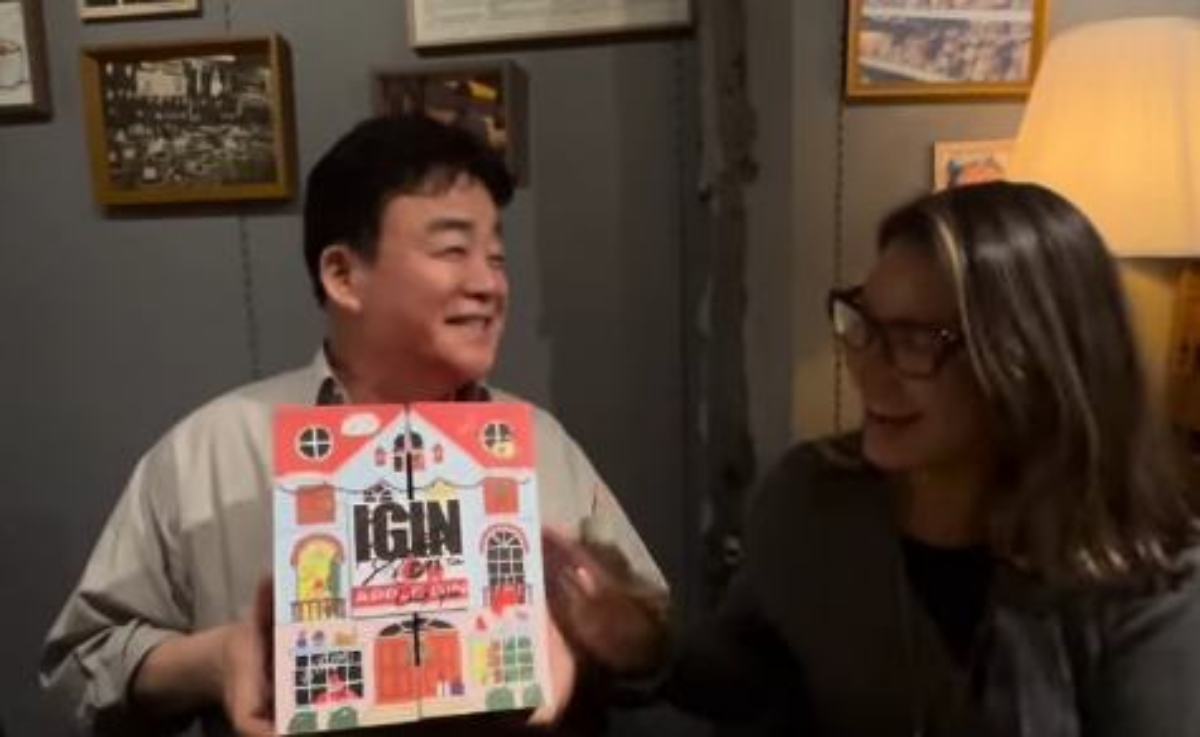 이 자리에서 백 대표는 그룹 방탄소년단 멤버 진의 친필 사인이 담긴 전통주 ‘아이긴’을 선물로 전달했다. 진은 해당 전통주의 홍보대사를 맡고 있다. 백 대표는 “진이 함께하고 싶어 했지만 일정상 참석하지 못해 아쉬워했다”며 “직접 만든 술에 사인해 전달해 달라고 했다”고 설명했다.