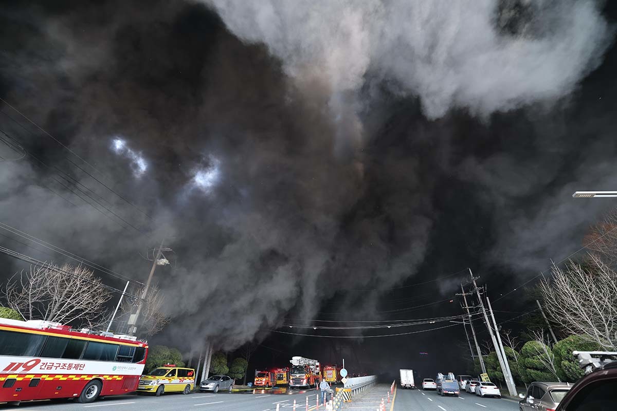 이날 오후 1시 17분께 공장에서 큰 불이 나면서 검은 연기가 치솟기 시작했다. 소방당국은 신고 접수 9분 만인 오후 1시 26분 소방 대응 1단계를 발령하고, 이어 오후 1시 31분에는 불길 확산 조짐이 보이자 대응 2단계로 격상해 총력 대응에 나섰다. 이후 다수 인명 피해 발생이 우려된다고 판단, 오후 1시 53분을 기해 국가소방동원령을 발령했다.